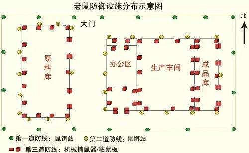 在產(chǎn)品原料、成品、包裝、設(shè)備等倉(cāng)庫(kù)內(nèi),沿著墻壁放置機(jī)械捕鼠器或粘鼠板,間隔小于8米,尤其是入口兩側(cè)和拐角的位置